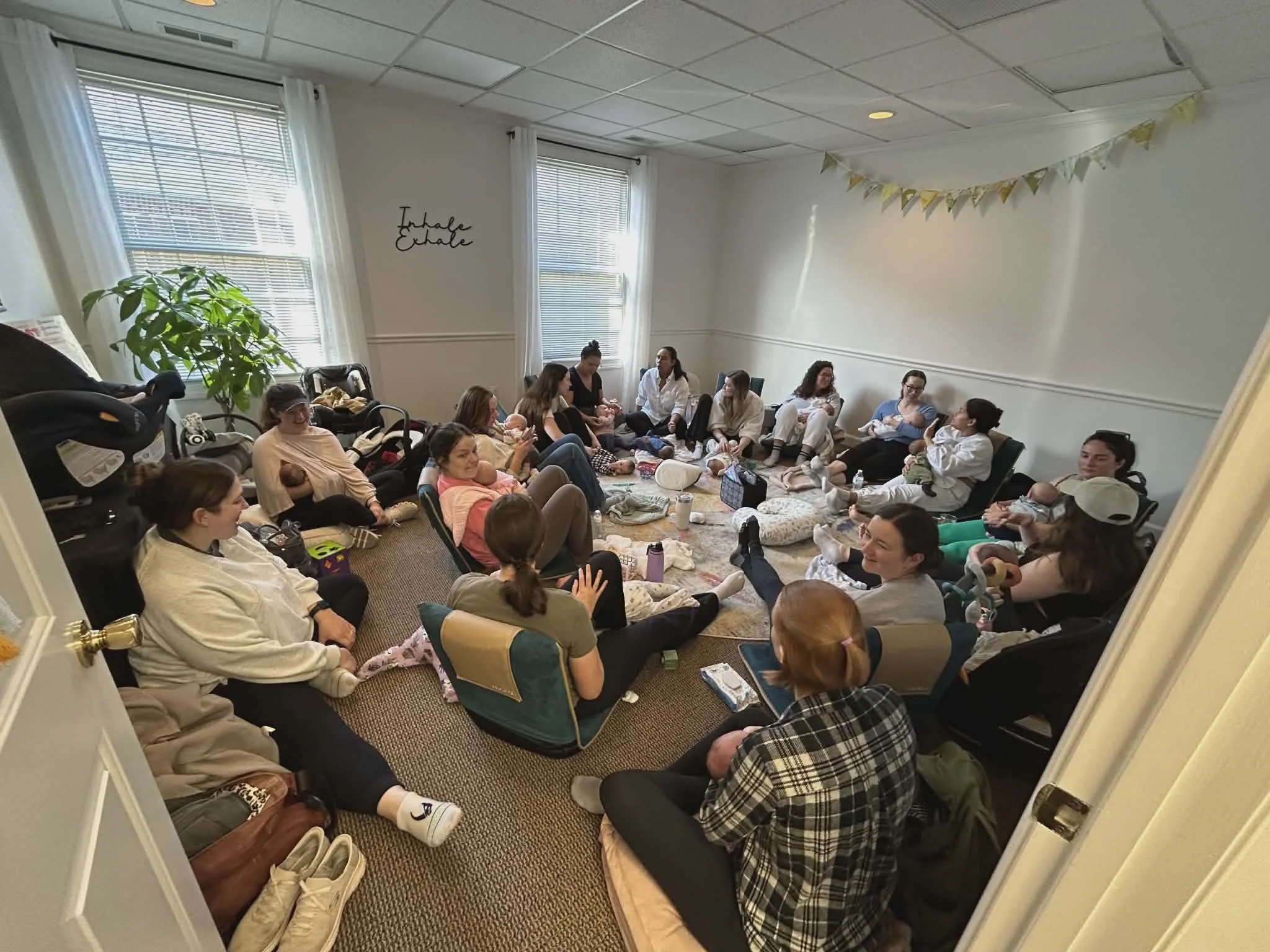 We would love to have you register while you are still pregnant so you can save your spot before baby arrives. Ideally we want babies to be 3-6 weeks old when you start your 8-week series so that you are in a space with other moms with babies the same age as yours!